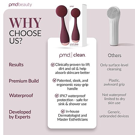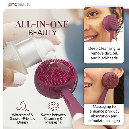 PMD Clean - Smart Facial Cleansing Device with Silicone Brush & Anti-Aging Massager - Waterproof - SonicGlow Vibration Technology, Valentine's Day gift $40.00