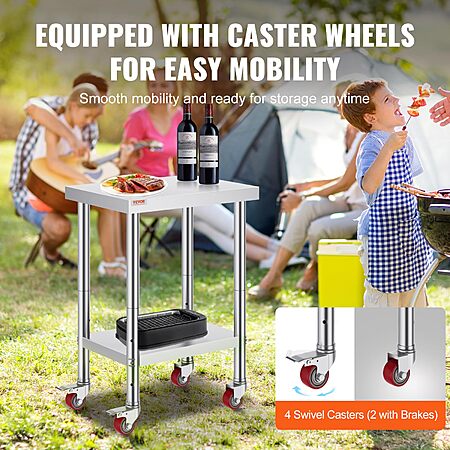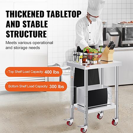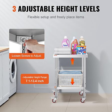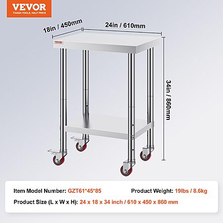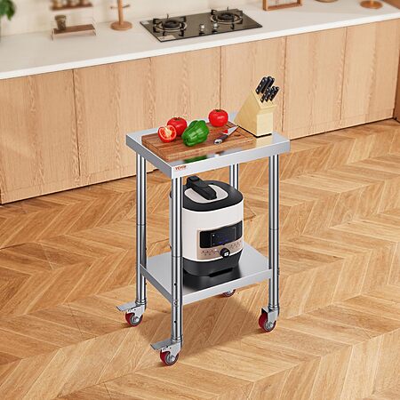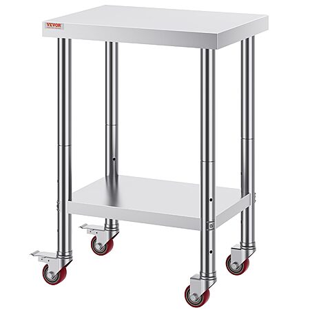 Amazon.com has Mophorn 24x18x34 Inch Stainless Steel Work Table 3-Stage Adjustable Shelf with 4 Wheels Heavy Duty Commercial Food Prep Worktable with Brake for Kitchen Prep Work on sale for $60. Shipping is Free.