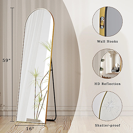 $30*:BEAUTYPEAK 59"x 16" Full Length Mirror Arched Standing Floor Mirror Full Body Mirror,Gold/Black