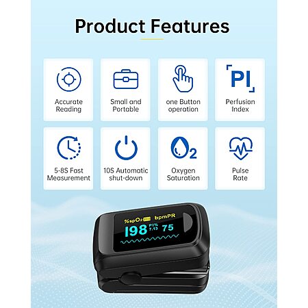 Fingertip Pulse Oximeter HealthTree Blood Oxygen Monitor Pulse Ox, Heart Rate monitor PRIME ONLY DEAL $9.49