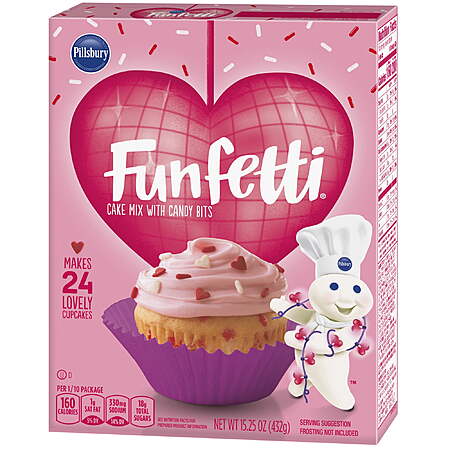 - One 15.25 oz box of Pillsbury Funfetti Valentine's Cake Mix with Candy Bits