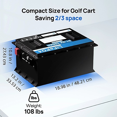 - Versatile Compatibility: Designed to power a range of 48V applications including golf carts, like YAMAHA, Club Car, EZ GO, lawnmowers, RVs, trolling motors, marine vessels, and off-grid systems. Its stackable design and easy connectivity make it a space-efficient solution for your storage needs.