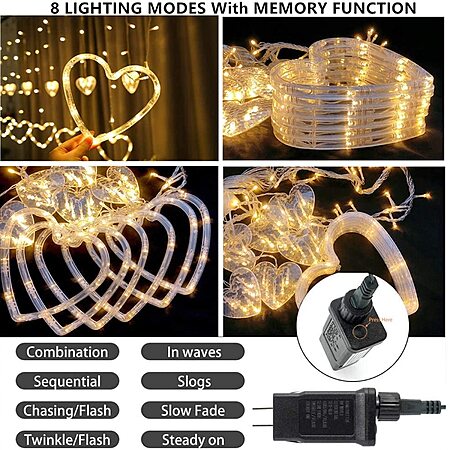 138 LED 12-Heart-Shaped Efunly String Lights w/ 8 Light Modes (Warm White) $13.99 + Free Shipping w/ Prime or on $35+