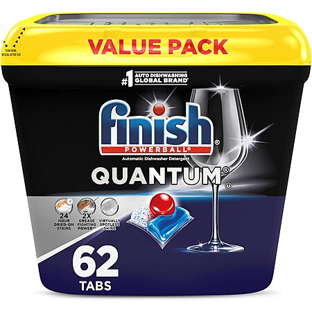 Model: Finish Quantum Dishwasher Pods, No Pre-Rinse Dishwasher Detergent Soap Removes 24HR Dried-On Stain and Grease, Leaving a Virtually Spotless Shine, 62 Count