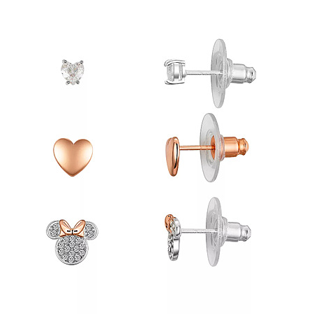 Disney's Minnie Mouse 14k Rose Gold Two Tone Cubic Zirconia Stud Earring Set (Gold plated fine silver) + Free Shipping over $49 - $19.99