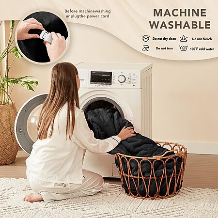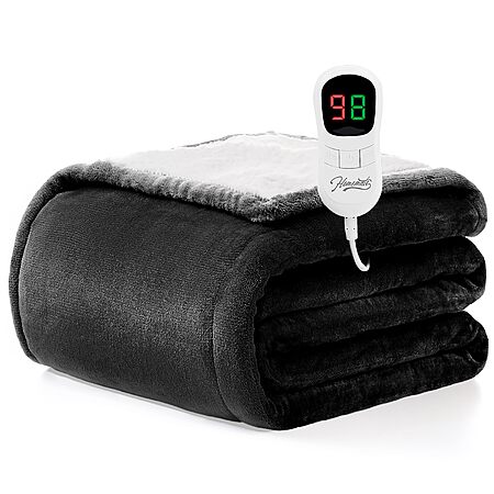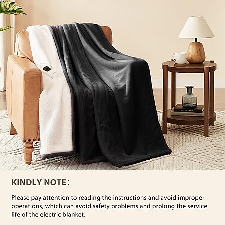 Homemate Heated Blanket Electric Throw - 50"x60" Heating Blanket Throw 1/2/4/6/8 Hours Auto-Off 10 Heat Level Over-Heat Protection Flannel Sherpa ETL Certification $28.99