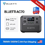 BLUETTI AC70 768Wh 1000W LiFePO4 Solar Portable Power Station