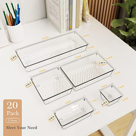 20-Pack Criusia Clear Drawer Organizer Set (5 Sizes) $17.99 + Free Shipping w/ Prime or on $35+