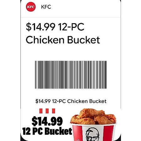 12PC KFC Chicken Bucket for only $14.99! Perfect for game day 🏈. Exp Mon 2/9/26. *must show coupon*