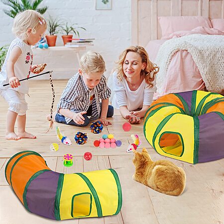 [Prime] 39.4" Retro Shaw Large Cat Tunnel W/ 33-Piece Toys Set $11.10 + Free Shipping