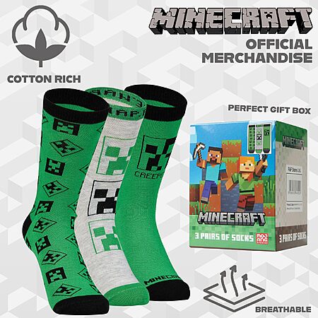 3-Pair Minecraft Boys' Crew Socks (10-13 years) $5.99 ($1.99/pair) + Free Shipping w/ Prime or on $35+