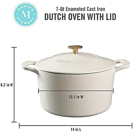 [YMMV, AC] $33.59 | 7-Qt Martha Stewart Gatwick Enamel Cast Iron Dutch Oven (Linen White With Gold) at Amazon