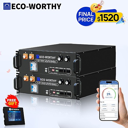 2-Pack ECO-WORTHY 48V 100Ah LiFePO4 Batteries + 48V Battery Monitor $1520 + Free Shipping