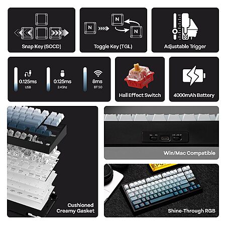 EPOMAKER G84 HE Wireless Hall Effect Hot Swappable Keyboard with Fast Trigger & Adjustable Actuation, RGB Lighting & PBT Keycaps (Black) $67.99 + Free Shipping