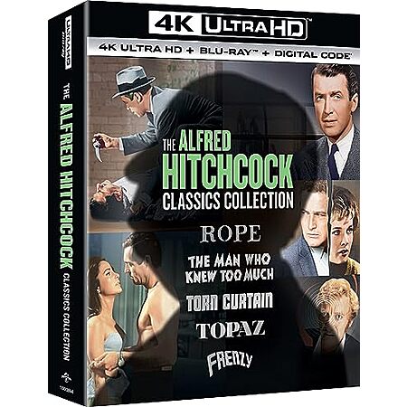 [YMMV, AC] $16.79 | The Alfred Hitchcock Classics Collection: DigiBook, Rope, The Man Who Knew Too Much, Torn Curtain, Topaz, Frenzy (4K Ultra HD + Blu-ray + Digital 4K) at Amazon
