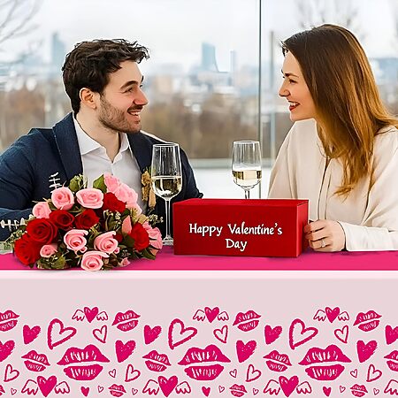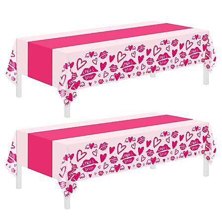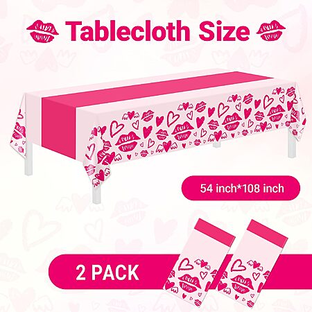 Childom 2 Pcs Valentines Day Tablecloths for Valentines Day Decorations,54" x 108" Disposable Plastic Tablecloths - $3.99