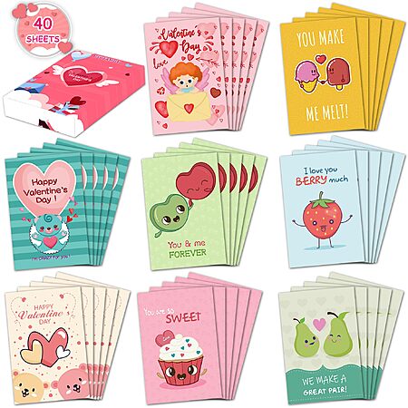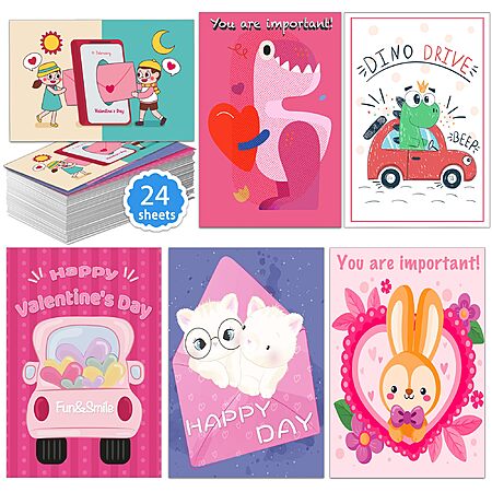 HSHFAMIIY Valentines Day Cards for Kids School, 24 Sheets Valentines Cards - $1.99 or 40 Pack Cards - $2.49