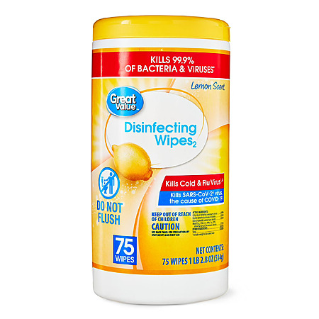 $2.98: Great Value Lemon Scent Disinfecting Wipes, 75 Count, 1 Lbs, 5.5 oz