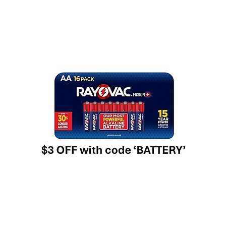 (16 PACK) Rayovac AA Fusion Premium Alkaline Batteries $5 ea ac, limit 1 at $5., Free PRIME Ship WOOT