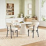 Model: DUMOS Dining Chairs Set of 2, Mid Century Modern Chair Round Upholstered Curved Backrest, Kitchen Vanity Living Room Chairs with Black Metal Legs,Light Beige