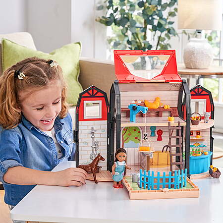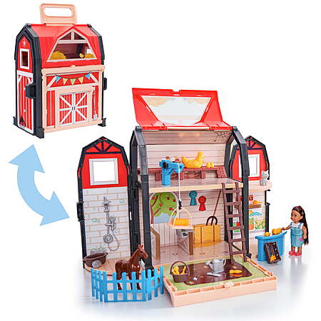 30-Piece KidKraft Tote-ables Portable Barn Dollhouse w/ Doll for