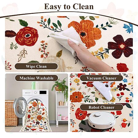 - Colorful floral design: 2 x 3 ft boho runner with vibrant printed floral and leaves pattern; eye-catching for entryway, kitchen, or high-traffic areas