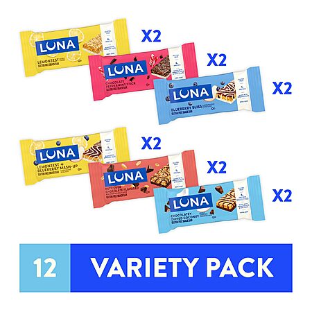 [Regional] 12-Pack LUNA Bar Gluten Free Snack Bars Variety Pack (6 Flavors) $9.47 w/ S&S + Free Shipping w/ Prime or on $35+