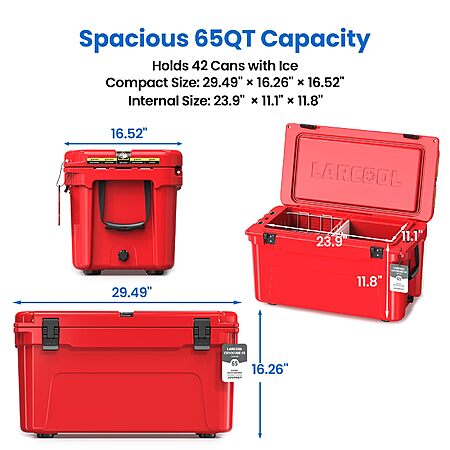 Amazon has LARCOOL rotomolded ice chest coolers with 3 inch insulation for $105.49 for the 45 quart size and $145 for the 65 quart size. Free shipping and free returns. Choose Red or Blue.