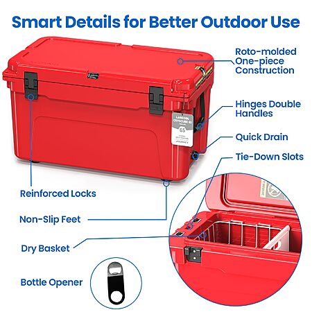I found this listing after bringing home the $50 Costco deal on the 62 qt Igloo Maxcold roller cooler which is $20 off at the warehouse. I haven't seen rotomolded at this price point before.