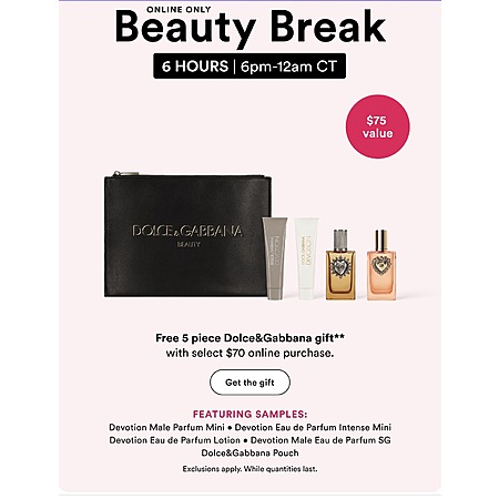 Continue shopping and when $70 or more in select merchandise is added to the shipped portion of your bag, your gift will turn to free.