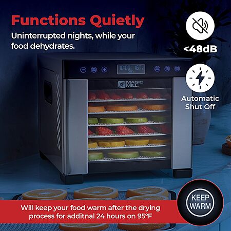 Model: Magic Mill Pro Food Dehydrator Machine | 7 Stainless Steel Trays | Dryer for Jerky, Dog Treats, Herb, Meat, Beef, Fruit | Keep Warm Function, Digital Timer and Temperature Control, ETL Approved