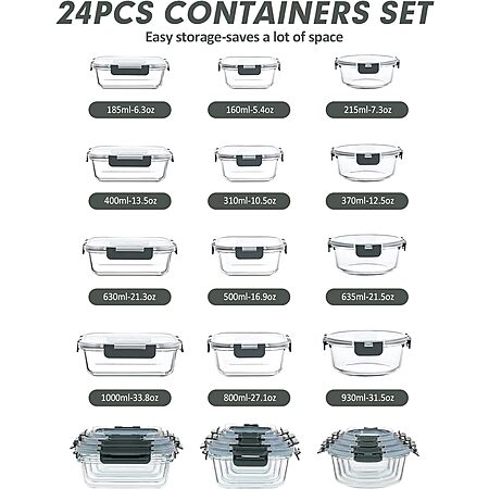 VERONES 12 Packs Glass Food Storage Containers Set, Airtight Glass Lunch Containers, Glass Meal Prep Containers with Lids $29.99