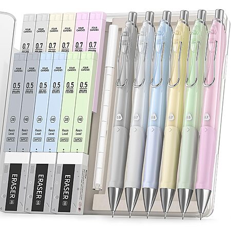 6-Piece Four Candies Pastel Mechanical Pencil Set w/ Refills, Erasers & Case on sale for $14.99 - $7.50 (50%) off when you apply promo code