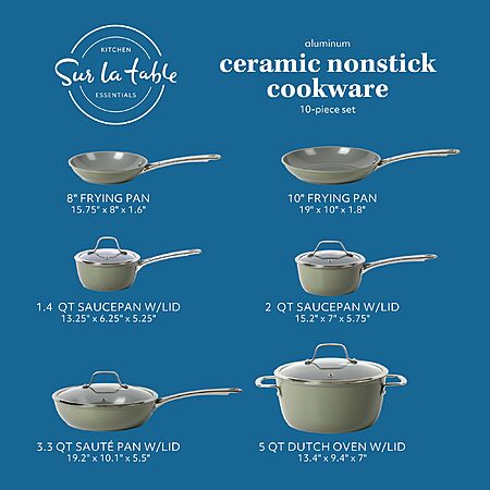 10-Piece Sur La Table Kitchen Essentials PFA Free Non-Toxic Titanium Ceramic Nonstick Interior Forged Aluminum Cookware Pots and Pans Set (Green) - $64