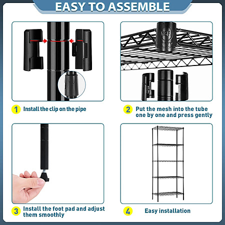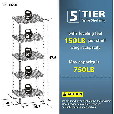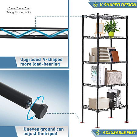 BestOffice Adjustable Storage Shelves Metal Storage Shelf (Black, 16.7L×11.8W×47.6H) $33.99