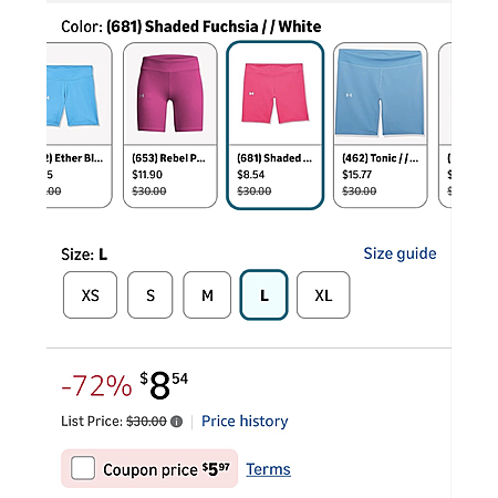 Under Armour Girls Motion Bike Shorts, (681) Shaded Fuchsia LARGE $5.97 w coupon