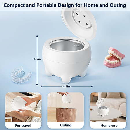 ⚠️ Safe, Durable & Easy to Maintain - ultrasonic denture cleaner Constructed with a premium ABS housing and a SUS304 stainless-steel tank, this ultrasonic retainer cleaner machine is designed for reliable, long-term use. For proper care, clean the exterior with a dry or slightly damp cloth only—do not rinse or submerge the main unit. Keep water away from the charging port and power interface, as moisture intrusion may cause electrical malfunction or short circuit. A non-slip rubber base provides added stability during operation, ensuring denture cleaner tablet safe and dependable daily use.