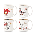 Serve up tea, cocoa or coffee and warm fuzzy kisses with this set from Lenox, four porcelain Snoopy mugs with sleek gold trim.