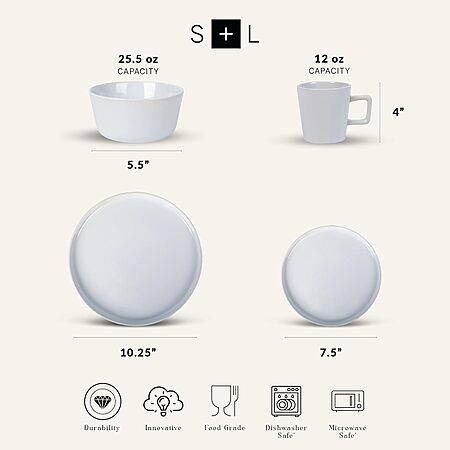 Stone Lain Celina Modern Stoneware 16-Piece Dinnerware Set, Plates and Bowls Set, White Glossy, Dish Set Service For 4 $33.7