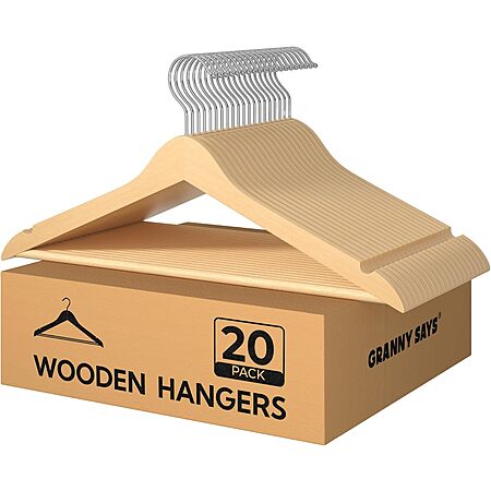 20-Pack Granny Says Heavy-Duty Wooden Clothes Hangers (Natural Wood) $11.65, 30-Pack $17.48 + Free Shipping w/ Prime or on $35+