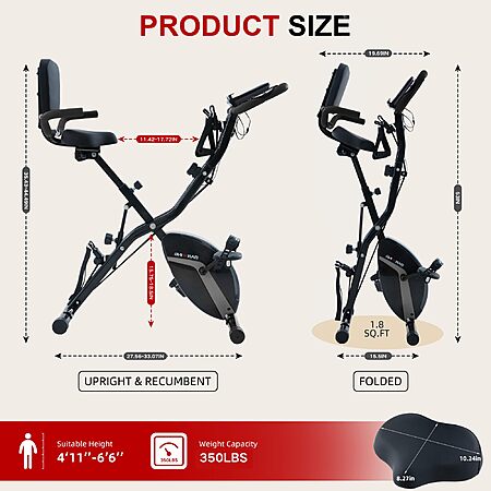 BARWING Stationary Exercise Bike for Home with App,5 IN 1 Foldable Indoor Cycling Bike for Seniors, 350LB Capacity, 6.6 LBS Flywheel $159.99