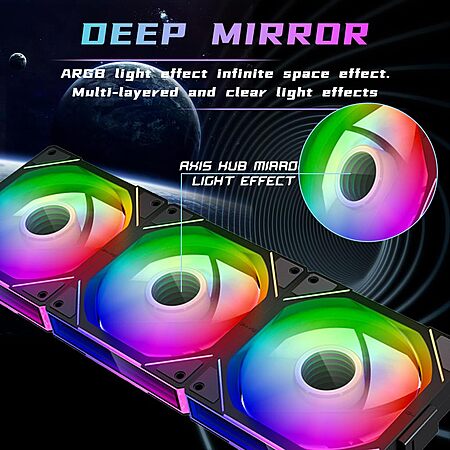Jungle Leopard Interstellar V1 120mm PC Case Fans,Infinity Mirror Module Daisy-Chain 2000RPM PWM Case Fans 120mm Triple Pack Suitable for Computer Case & CPU Cooling (Black)