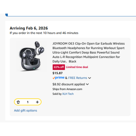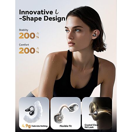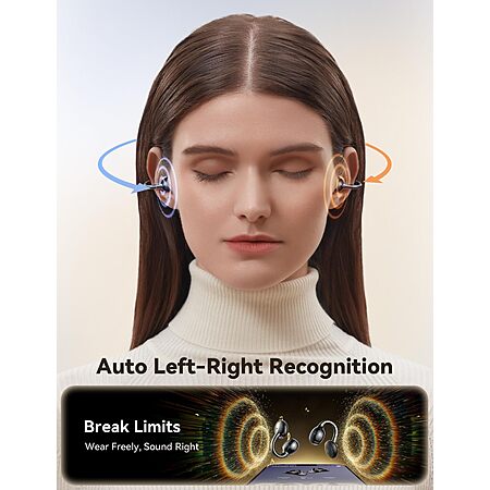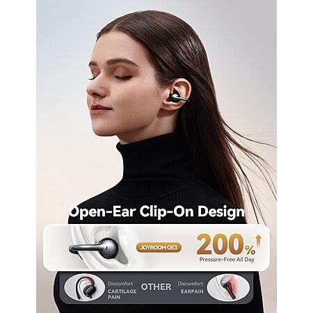 Model: JOYROOM OE3 Clip-On Earbuds, Wireless Open Ear Earbuds Headphones with Auto L-R Recognition, Omni Tap Control, Immersive Sound, and Ultra-Light 4.9g Fit, Comfortable for Workouts and Daily Use(Black)