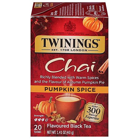 20-Count Twinings Pumpkin Spice Chai Black Tea Individually Wrapped Tea Bags (Caffeinated) $2.47 w/ S&S + Free Shipping w/ Prime or on $35+