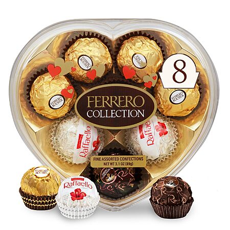 Ferrero Collection Valentine's Day Heart Gift Box, 8 Assorted Hazelnut, Dark Chocolate and Coconut Treats, 3.1 oz on sale for