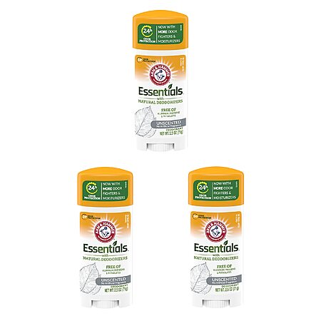 Arm & Hammer Deodorant 2.5 Ounce Essentials Unscented (73ml) (3 Pack) $9.99