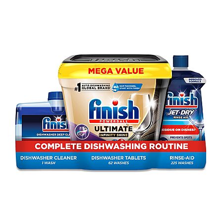 Finish Ultimate Deep Clean Bundle - Ultimate Dishwasher Pods (62ct), Jet Dry Rinse Aid (23oz), Dishwasher Cleaner (8.45oz)- $30.01