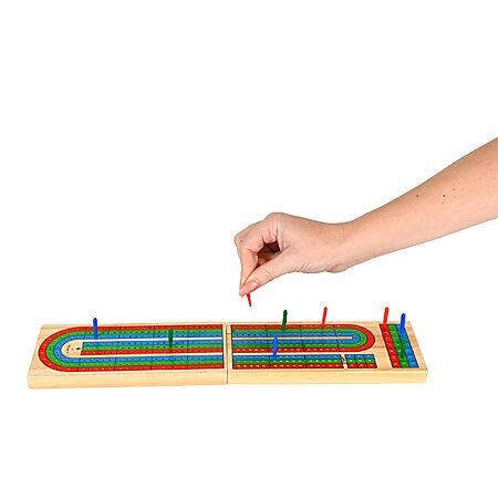 Model: Elbow Room Games Cribbage Set, Folding Wooden Board with 9 Colored Pegs and Poker Playing Cards, Portable Travel Design, Classic Strategy Game for 2-3 Players