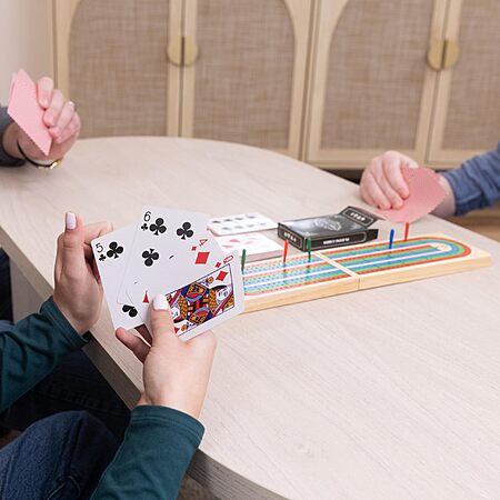 Sunny Days Entertainment Elbow Room Games Cribbage Set, Folding Wooden Board with 9 Colored Pegs and Poker Playing Cards, Portable Travel Design, Classic Strategy Game for 2-3 Players