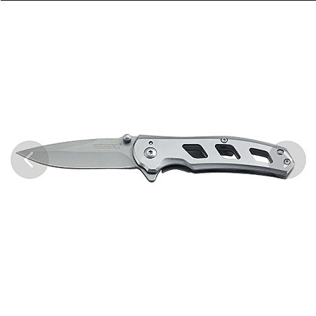 The Guidesman® Suppressor 2™ Knife features a stainless steel handle for strength and durability. The 2.88-inch blade is made of drop point 8Cr13MoV steel, which is known for its rust and corrosion resistance and will hold up well during normal cutting tasks. It has a frame lock safety and removable pocket clip for easy carrying.